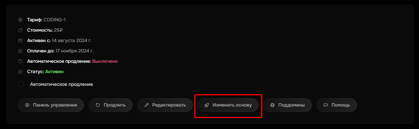 - Нажмите на кнопку "Изменить основу"